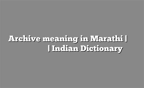 Archive Meaning in Marathi: A Comprehensive Guide