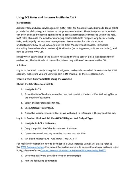 Alright, let’s get practical. How do you actually create and assign an instance profile to your EC2 instance? Don’t worry; it’s not as daunting as it sounds. You’ll primarily be working with the IAM service and the EC2 launch wizard. First, you need to create an IAM role. This role defines the permissions that your EC2 instance will have. Go to the IAM console in the AWS Management Console and click on “Roles.” Then, click “Create role.” Choose “AWS service” as the trusted entity and select “EC2” as the use case. This tells IAM that this role will be assumed by an EC2 instance. Next, you’ll need to attach policies to the role. Policies define the specific permissions that the role will have. You can choose from AWS-managed policies, which are pre-defined policies that grant common permissions, or you can create your own custom policies. When selecting policies, follow the principle of least privilege. Grant only the necessary permissions to the role, and avoid granting broad or overly permissive access. For example, if your EC2 instance only needs to read data from an S3 bucket, grant it read-only access to that bucket. Once you’ve attached the necessary policies, give your role a descriptive name and review the details. Make sure the role name is meaningful and reflects the permissions that the role grants. Finally, click “Create role” to create the IAM role. Now that you have an IAM role, you can create an instance profile. In the IAM console, navigate to the role you just created and click on the “Create Instance Profile” button. The instance profile will automatically be associated with the selected IAM role. Now, let’s assign the instance profile to an EC2 instance. When launching a new EC2 instance, you’ll be presented with a step to configure instance details. In this step, you can select the IAM role that you want to associate with the instance. Choose the IAM role that you created earlier. If you already have an existing EC2 instance, you can also assign an instance profile to it. Stop the instance (if it’s running), then go to the EC2 console, select the instance, and choose “Actions” > “Instance Settings” > “Attach/Replace IAM Role.” Select the IAM role you want to attach and click “Apply.” Remember that stopping and starting an instance will change its public IP address, so be sure to update any DNS records or configurations that rely on the old IP address. That’s it! Your EC2 instance now has an instance profile, and it can securely access other AWS services based on the permissions defined in the IAM role. Remember to regularly review and update your IAM roles and policies to ensure that they are aligned with your security requirements and that you are following the principle of least privilege.
