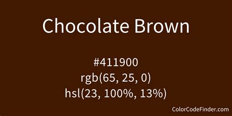 Chocolate brown , a darker and sweeter shade, brings to mind indulgence and decadence. Chocolate brown color works well in designs related to food, beverages, and other luxury items. Chocolate brown evokes feelings of pleasure and satisfaction. This color can add a touch of sophistication to any project. Here are the color codes for chocolate brown: