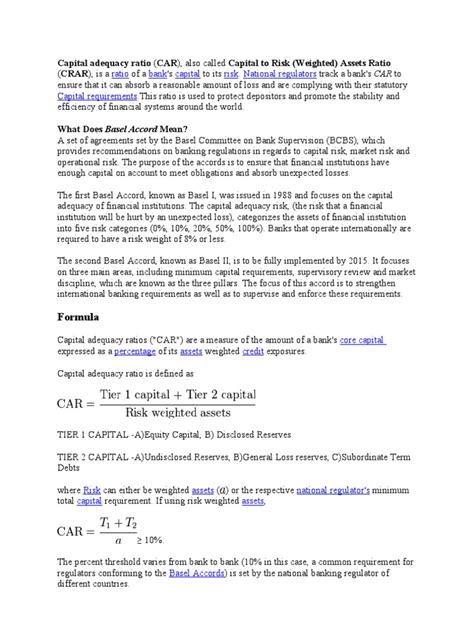 Capital Asset Ratio In Banking Explained