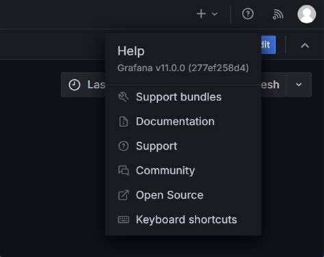 In the Help menu, you should see an “About” option . Click on “About” to open the About dialog box. This dialog box contains information about your Grafana installation, including the version number, build date, and commit hash.