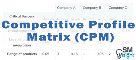 So, how exactly does this magical Competitive Profile Matrix work its charm? It’s all about breaking down the competitive landscape into digestible pieces. At its core, the CPM involves identifying Critical Success Factors (CSFs) – those essential elements that determine success within your specific industry. These aren’t just random metrics; they are the make-or-break elements that customers care about and that drive profitability. For instance, in the fast-food industry, CSFs might include things like price, food quality, speed of service, brand reputation, and location accessibility. In the tech world, CSFs could be innovation, customer support, market share, and ease of use. Once you’ve nailed down your CSFs, the next step is to assign weights to each factor based on its relative importance to industry success. Not all CSFs are created equal, right? Some will be far more critical than others. The sum of all weights must equal 1.0, signifying that you’ve accounted for the entire spectrum of success drivers. Following this, you’ll rate each competitor (including your own company) on each of the identified CSFs. This rating is typically done on a scale, say 1 to 4, where 1 is a major weakness and 4 is a major strength. The real magic happens when you multiply the weights by the ratings to get a weighted score for each company on each CSF. Summing up these weighted scores for each competitor gives you a total competitive score . This final score provides a quantitative measure of how strong each company is relative to its peers. It’s like giving each player on the field a score based on their performance across all the crucial plays. This systematic approach removes guesswork and provides a clear, objective picture of the competitive battlefield.