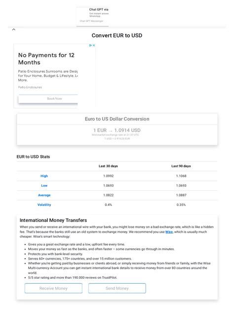 When you’re dealing with currency conversions, especially for amounts like 90 EUR to USD , a few practical tips can save you hassle and money. First, always check the real-time exchange rate before you commit to an exchange. As we’ve discussed, it changes constantly. Use those reliable online converters we talked about. Second, be aware of fees . Banks and exchange bureaus often add a commission or a spread to the mid-market rate. Sometimes, using an ATM in the foreign country (if your bank allows it without hefty fees) or using a credit card with no foreign transaction fees can offer a better rate than a dedicated exchange counter. Third, shop around . If you need to exchange a larger sum, compare rates from different providers. Even a small difference in the exchange rate can add up. For your 90 Euros to US Dollars , the difference might be small, but it’s a good habit to get into. Finally, understand the difference between the mid-market rate and the retail rate . The mid-market rate is what you see on Google or XE.com, the actual interbank rate. The retail rate is what you’ll actually get when you buy or sell currency, and it will include the provider’s profit margin. So, keep these tips in mind for smoother currency exchanges!