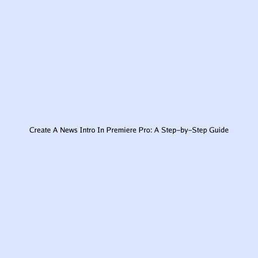 Create A News Intro In Premiere Pro: A Step-by-Step Guide