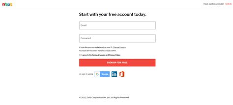 • Other Options: Zoho may also offer other sign-up options, such as using your LinkedIn or Microsoft account. Choose the option that works best for you. When you create a zoho account this way, it can make logging in easier down the road.