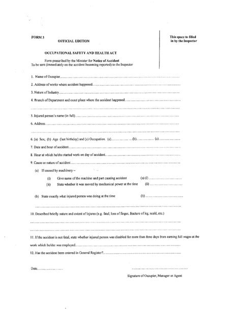 Hey guys! Ever feel like you’re drowning in paperwork when it comes to workplace safety? Well, you’re not alone! Navigating the Occupational Safety and Health (OSH) Act 2007 and its associated forms can seem like a daunting task. But don’t worry, this guide is here to break it all down for you. We’ll explore the key forms , what they mean, and how they help keep you and your colleagues safe. So, let’s dive in and demystify the world of OSH Act 2007 forms! This information is crucial for employers and employees alike, ensuring everyone understands their roles in maintaining a safe and healthy work environment. Get ready to transform your understanding of workplace safety regulations. Get ready to be empowered with knowledge. Let’s make sure everyone understands the forms. Ready, set, let’s go!