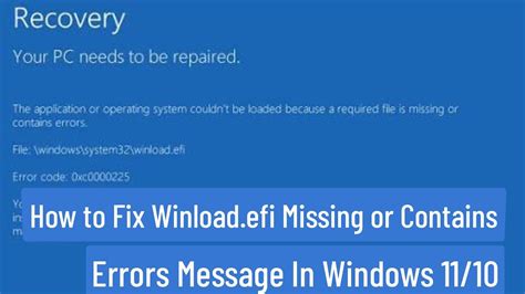 Common error messages related to winload.efi include “ The application or operating system couldn’t be loaded because a required file is missing or contains errors ” or “ \Windows\system32\winload.efi is missing or corrupt ”. These errors usually indicate that the file is either missing, corrupted, or inaccessible due to various reasons, which we’ll explore in the next section.