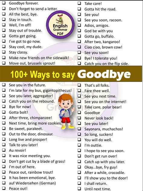 Alright, let’s break down how to handle goodbyes in different situations, because, let’s face it, not all goodbyes are created equal, right? First up, the casual goodbye. This is your everyday “see ya later” with a friend you know you’ll meet again soon, or a coworker heading home. Here, a simple and sincere “Bye! Have a good one!” or “See you tomorrow!” usually does the trick. No need to overthink it. You can even add a quick, genuine compliment like, “It was great chatting!” to add a touch of warmth. The key is to keep it light and positive, reinforcing that the parting is temporary and not a big deal. Then you’ve got the more significant goodbyes. Think about saying farewell to a friend who’s moving away, or a mentor who’s retiring. These require a bit more thought and heart. You want to express your appreciation for their presence in your life and your sadness at their departure. Phrases like, “I’m going to miss you so much, but I’m so excited for your new adventure!” or “Thank you for everything; you’ve made such a difference in my life,” can be really impactful. It’s about acknowledging the relationship and the impact it’s had. For really tough goodbyes, like ending a relationship or saying farewell to someone who has passed, the words become even more crucial, yet potentially harder to find. In these moments, honesty and vulnerability are key. It might be as simple as, “I love you and I’ll never forget you,” or “I’m so grateful for the time we had.” Sometimes, a hug and a heartfelt look can convey more than words ever could. Don’t be afraid to lean on others for support during these times, whether it’s sharing memories with friends or seeking professional help. Remember, it’s not always about having the perfect, eloquent speech. It’s about being genuine and authentic to your feelings. Even a quiet “take care” can be powerful if it’s delivered with sincerity. The goal is to honor the connection you had and to allow yourself and the other person to process the transition. We’ll explore specific phrases and techniques later, but for now, just know that adapting your goodbye to the context is super important. Each situation calls for a slightly different approach, and it’s okay to take a moment to figure out what feels right for you and the person you’re saying goodbye to.