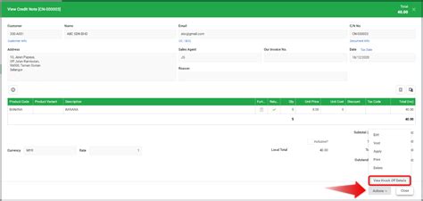 6. Verify and save the credit note.