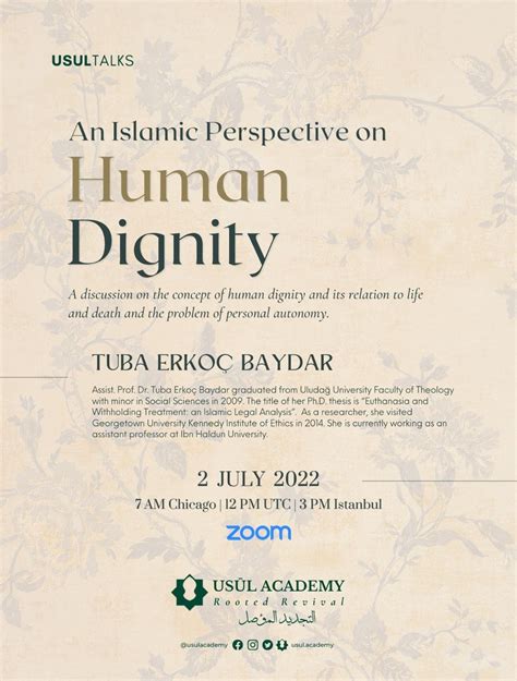 In conclusion, human dignity in Islam is a fundamental principle that is deeply rooted in the teachings of the Quran and the Sunnah. It affirms the inherent worth and value of every human being, regardless of their race, gender, religion, or social status. This dignity is a gift from Allah and is an integral part of the Islamic worldview. Upholding human dignity requires treating everyone with respect, kindness, and empathy, and working to create just and equitable societies. By understanding and applying these principles, Muslims can contribute to building a more harmonious and compassionate world.