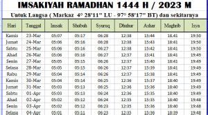 - Jadwal Imsakiyah Ramadhan 2023 Kota Langsa: Waktu Sholat dan Puasa