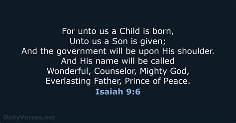 First things first, let’s take a look at the verse itself. In the KJV, Isaiah 9:6 reads: “ For unto us a child is born, unto us a son is given: and the government shall be upon his shoulder: and his name shall be called Wonderful, Counsellor, The mighty God, The everlasting Father, The Prince of Peace. ” It’s a beautiful and powerful declaration, isn’t it? Even just reading it gives you the feels, right? The language is rich, poetic, and full of anticipation. But what does it all really mean? That’s what we’re going to explore. This verse is a cornerstone of Christian theology, offering a glimpse into the coming of Jesus Christ, the Messiah. The prophecy foretells the birth of a special child, who is also a son, and who will bear immense responsibility. Let’s start with the phrase that begins the verse: “ For unto us a child is born, unto us a son is given. ” This is a statement of immense joy and promise. It marks the beginning of a new era, a time of hope and deliverance. The terms “child” and “son” are significant because they represent both the humanity and the divinity of the one who is coming. The child represents the human birth, while the son represents his divine origin and nature. It’s like, a two-for-one deal! This duality is central to the Christian understanding of Jesus: fully human, fully God. Then comes the statement “ and the government shall be upon his shoulder ,” which speaks to the authority and reign of the coming Messiah. The imagery here is striking: the government, the weight of leadership and responsibility, resting upon the shoulders of this child and son. This signifies that he will be a ruler of unparalleled power and righteousness. This isn’t just about political power, though. It’s about spiritual authority, the kind that transforms hearts and establishes true peace. This is the kind of peace we all crave. This verse sets the stage for the rest of the prophecy, highlighting the roles and attributes of the Messiah. It’s a bold claim, and it’s something that has been echoed throughout the history of Christianity. It’s a declaration that sets the stage for the New Testament and the fulfillment of the prophecy in Jesus Christ. This one verse just has it all!
