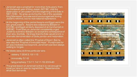 Hey guys! Ever find yourself diving into the Old Testament and feeling a bit lost in the shuffle of prophets and prophecies? Well, let’s unpack one of the big ones together: Jeremiah . This dude wasn’t just spitting out random predictions; he was a pivotal figure during a seriously turbulent time in Israel’s history. Think of him as the messenger with the tough love, delivering messages that nobody really wanted to hear, but everyone desperately needed. The Jeremiah BibleProject offers an incredible lens through which to understand his life, his prophecies, and the profound impact he had—and continues to have—on our understanding of faith, judgment, and hope.