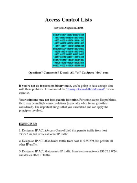 • Plan Your ACLs: Before you start configuring ACLs, plan out your security policy. Determine which traffic you want to permit and deny, and create a logical structure for your rules. This helps to avoid errors and makes troubleshooting easier.
