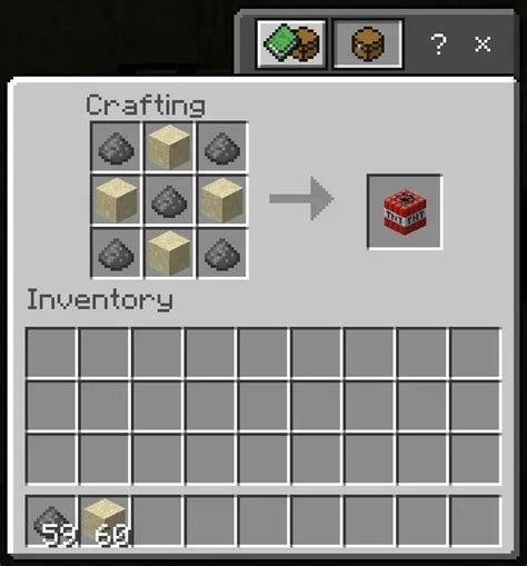 Okay, you’ve got your gunpowder and sand, now what? It’s time to hit the crafting table ! This is where all the magic (or rather, explosion-crafting) happens. Open up your crafting table interface. You’ll see a 3x3 grid. The TNT crafting recipe is pretty straightforward once you know it. You need to place the items in a specific pattern. Arrange four blocks of sand in a horizontal line across the bottom row of the crafting grid. Then, place five blocks of gunpowder in the remaining slots: one in the middle slot of the top row, one in each of the side slots of the top row, and one in each of the middle slots of the middle row. Essentially, it’s a row of sand at the bottom and a sort of checkered pattern of gunpowder filling up the rest.