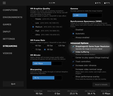 Once connected, you’ll see the Virtual Desktop menu in your headset. Navigate to the “Graphics” tab. Here, you’ll find several settings that control the visual quality of your VR experience.