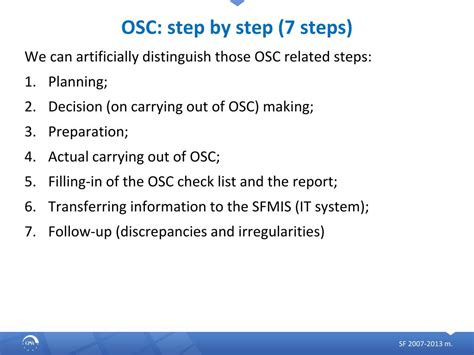 - OSC Steps are the processes that IT organizations use to respond to incidents and service requests. A well-defined and efficient set of OSC Steps ensures that issues are resolved quickly and effectively, minimizing disruption to the business. The knowledge and skills gained through COMSC are essential for developing and implementing effective OSC Steps.