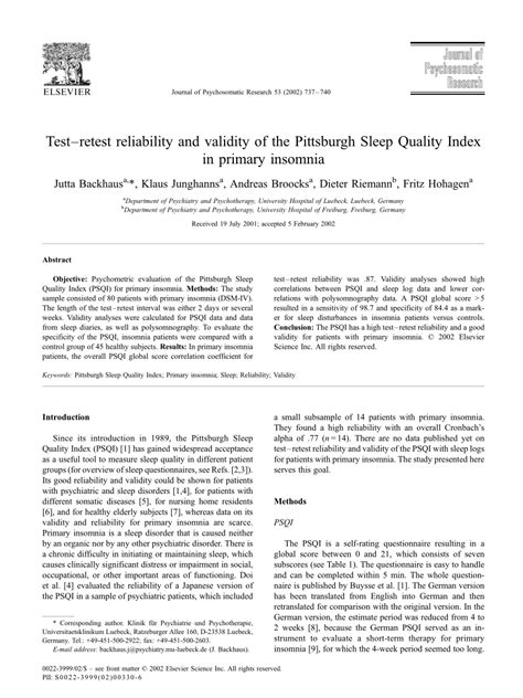 Hey guys! Today, we’re diving deep into something super important for anyone dealing with primary insomnia or even if you’re just curious about how we measure sleep quality: the Pittsburgh Sleep Quality Index (PSQI) . You know, those questionnaires that ask you all sorts of questions about your sleep? Well, the PSQI is a biggie in the sleep world, and we’re going to unpack its test-retest reliability and validity specifically within the context of primary insomnia. Why is this important? Because if we can’t trust the tool we’re using to assess sleep quality, how can we possibly figure out what’s going wrong or if treatments are actually working? We need reliable and valid measures, and the PSQI is a popular choice, so understanding its performance in this specific population is key. We’ll be looking at how consistent the results are when someone takes the test multiple times ( test-retest reliability ) and whether the test actually measures what it’s supposed to measure – sleep quality in people with insomnia ( validity ). Stick around, because this stuff is foundational for solid sleep research and clinical practice!