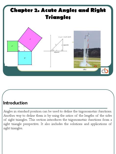 These ratios only make sense when you’re looking at one of the non-right angles in a right triangle. Let’s say you pick one of the acute angles, call it θ (theta). The side opposite to θ is one of the legs. The side adjacent to θ (but not the hypotenuse) is the other leg. The hypotenuse is always the longest side, opposite the right angle. The trigonometric functions (sine, cosine, tangent, and their reciprocals cosecant, secant, cotangent) are defined as specific ratios of these side lengths with respect to that acute angle θ . This allows us to do some seriously cool stuff. If you know two sides of a right triangle, you can use inverse trigonometric functions (like arcsin, arccos, arctan) to find the measure of the acute angles. For instance, if you know the length of the opposite side and the hypotenuse, you can find the angle using the arcsin function: θ = arcsin(Opposite / Hypotenuse). Conversely, if you know one acute angle and one side length, you can use the regular trig functions to calculate the lengths of the other sides. This is what makes trigonometry so incredibly useful in fields like surveying, navigation, engineering, and physics. Imagine trying to calculate the height of a building without trigonometry – it would be a nightmare! The acute angles of a right triangle , through their relationship with the side lengths via trigonometry, provide a powerful tool for measurement and calculation in the real world. They are the gateway to understanding more complex angles and trigonometric concepts too, forming the foundation upon which everything else is built. So, next time you see a right triangle, remember the hidden power within its smaller angles!