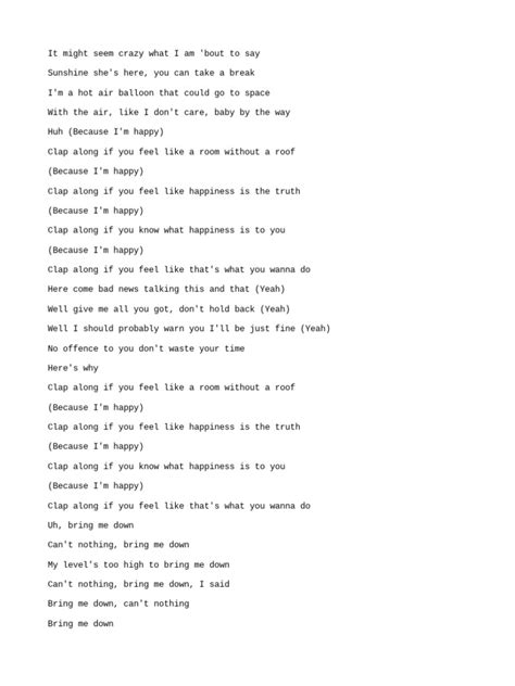 While “Happy” is undeniably catchy and simple on the surface, a closer look reveals some subtler, yet equally important, layers of meaning. The phrase itself, “Because I’m happy,” is more than just a declaration; it’s a statement of empowerment . It suggests that happiness is not something that just happens to you, but something you can choose and cultivate. This is a crucial distinction. The lyrics aren’t saying, “I’m happy because everything is perfect.” Instead, they are implying, “I am happy, and I will continue to be happy, despite whatever else is going on.”
