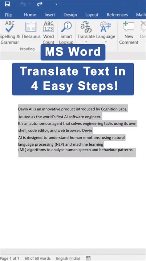 Okay, so you’ve got a paragraph or a few sentences you need translated, and you don’t want to mess with the whole document just yet. Translating selected text in MS Word is super straightforward. First things first, you need to open your document in Microsoft Word. Then, simply highlight the specific text you want to translate. Once you’ve got your text selected, head over to the ‘Review’ tab on the ribbon at the top of your Word window. You’ll see a ‘Translate’ button there. Click on it, and a dropdown menu will appear. From this menu, choose ‘Translate Selection’. Now, a ‘Translator’ pane will open up on the right side of your Word screen. This pane will show the original text you selected and, in most cases, will automatically detect the source language. Below that, you’ll see a field where you can choose the ‘To’ language – basically, the language you want your text translated into. Just select your desired target language from the dropdown list. Word will then display the translated text in the pane. You can then copy this translated text and paste it wherever you need it, perhaps into another document or just to understand its meaning. It’s as simple as that! This method is perfect for quickly getting the gist of a foreign email, a specific technical term, or a quote you need to understand. The beauty of this is its precision; you’re only translating what you need, keeping the rest of your document in its original form. Plus, it’s incredibly fast. You’re looking at seconds, not minutes, to get your translation. For those of you working with multilingual content, this is an absolute lifesaver. Remember, the more context Word has (i.e., the more text you select), the potentially better the translation might be, as it can understand sentence structure and idiomatic expressions more effectively. So, if you’re translating a tricky phrase, try selecting the whole sentence or even a couple of them. Don’t forget to check the source language detection; while it’s usually accurate, sometimes it might need a manual correction, especially with very short snippets or less common languages. This feature truly empowers you to work with text from all corners of the globe.