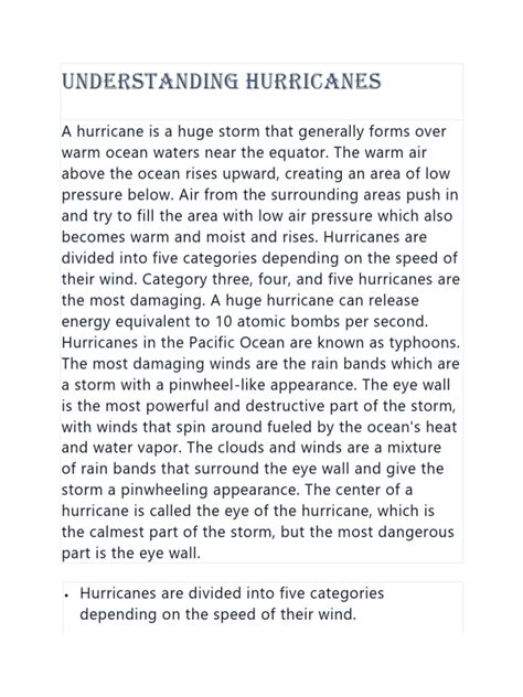 Also, keep in mind that hurricanes often spawn tornadoes. These are localized areas of intense destruction and can add to the damage caused by the wind and rain. They can develop rapidly and be very difficult to predict.