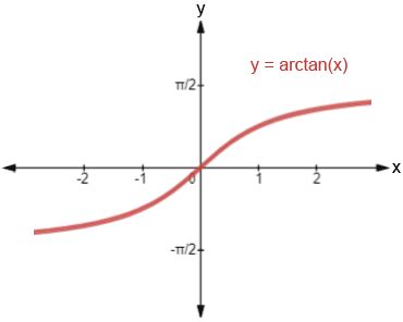 The graph passes through the origin (0, 0), because \(\arctan(0) = 0\) . This makes sense – if the ratio of opposite to adjacent is zero, the angle must be zero.