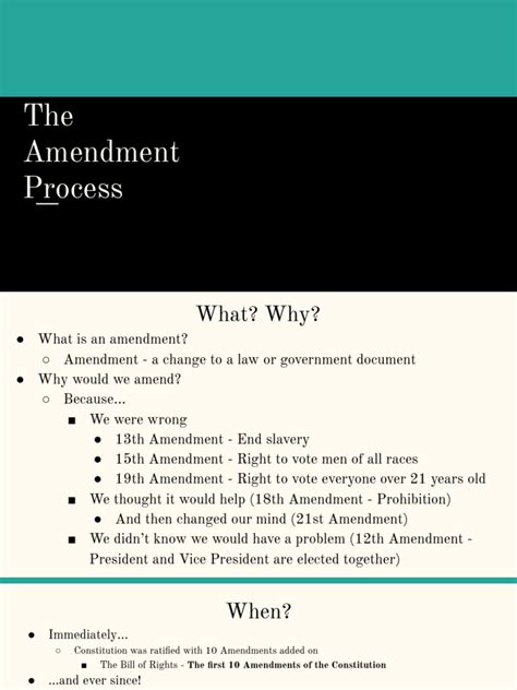 Understanding the amendment process is crucial for anyone who wants to be an informed citizen. It allows you to appreciate the ongoing evolution of our Constitution and to recognize the power of the people to shape the laws that govern them. It highlights the importance of civic engagement, democratic principles, and the ongoing pursuit of a more perfect union. Go out there and explore, and keep an eye on how our Constitution continues to evolve! That’s the beauty of it, guys – it’s always a work in progress!